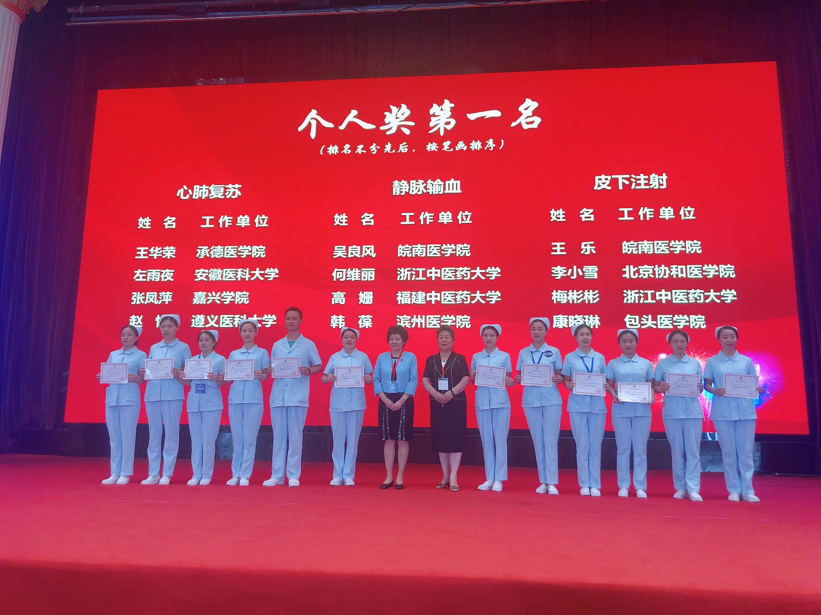 在沈勤、胡培亚老师的指导下,万象城屠乐微、梅彬彬、何维丽老师三位教师在竞赛中展现了“最美”风采。凭借精湛的临床操作技能、丰富的教学经验和扎实的专业基础,表现出色,赢得了评委和参赛同行的高度赞誉。最终从85支队伍中脱颖而出,荣获了团体奖第一名。同时,何维丽老师获得了静脉输血个人奖第一名,梅彬彬老师获得皮下注射个人奖第一名,屠乐微老师获得了CPR个人奖第三的名的优异成绩。