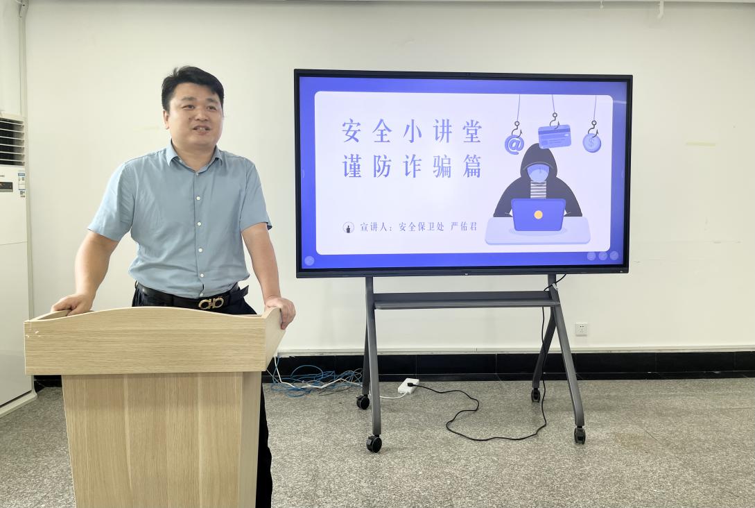 接着,安全保卫处严佑君、辅导员施正宇老师就新生安全防诈骗与心理健康工作两个主题进行介绍,新生开学是诈骗分子活动频繁的阶段,同时面对新的同学,新的群体也是最容易产生心理问题的时期。开学之际各位班主任应及时对新生进行安全教育培训,对有心理问题的学生及时进行疏导。
