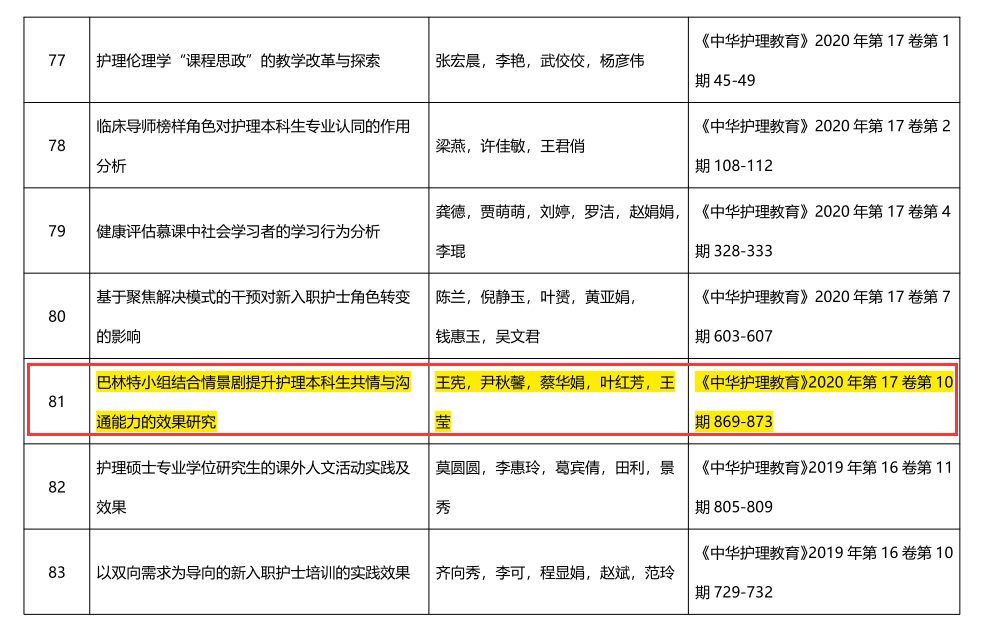 此次入选2021年中华护理学会百篇优秀科技论文名单的成绩来之不易,是何桂娟院长、王宪老师及其团队成员共同努力争取的荣誉,获奖作者将在11月12日-14日于山西省太原市召开的2021年中国护理科研高峰论坛上进行表彰,这将为万象城awcsport官网荣誉榜上增添浓墨重彩的一笔,也为其他老师继续奋斗获得新成绩而加油鼓劲。