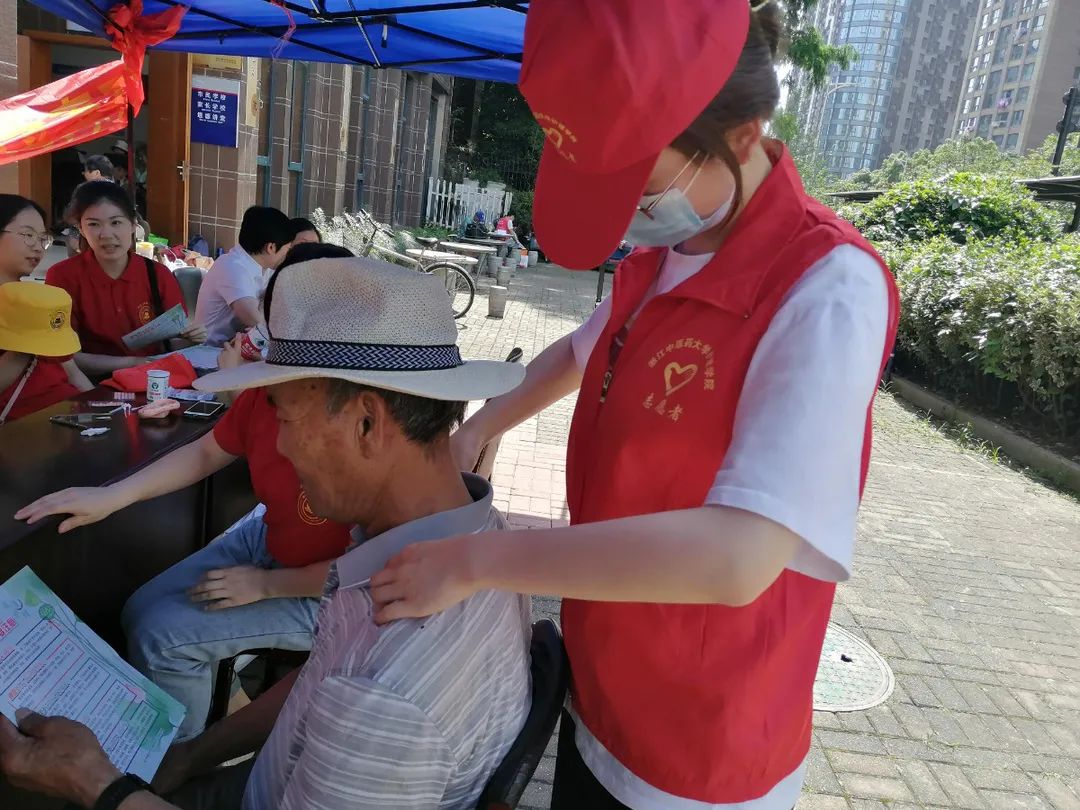 量血压时,志愿者会向居民普及相关的知识,加强居民们对于高血压的认识。耳穴压豆的志愿者则会向居民解释穴位所对应的器官,告诉他们耳穴压豆的益处。推拿的志愿者还会弯下腰询问老人力度是否合适。之后,志愿者们又给他们带来了无限的欢声笑语。志愿服务既是助人,也是自助,既乐人也乐己。