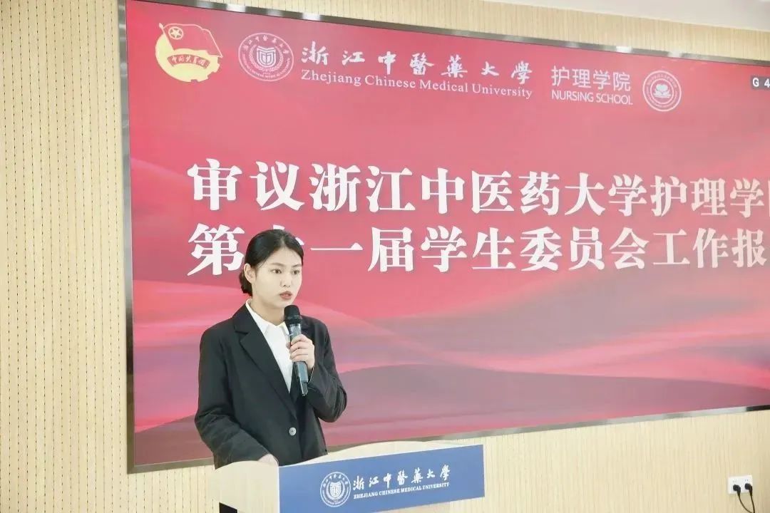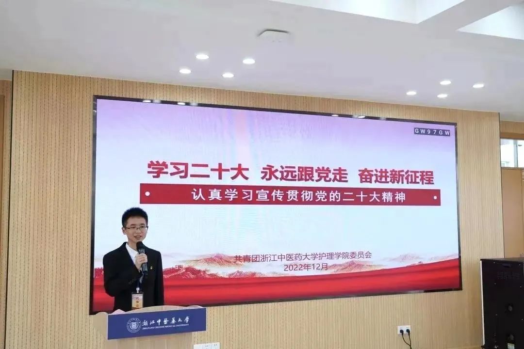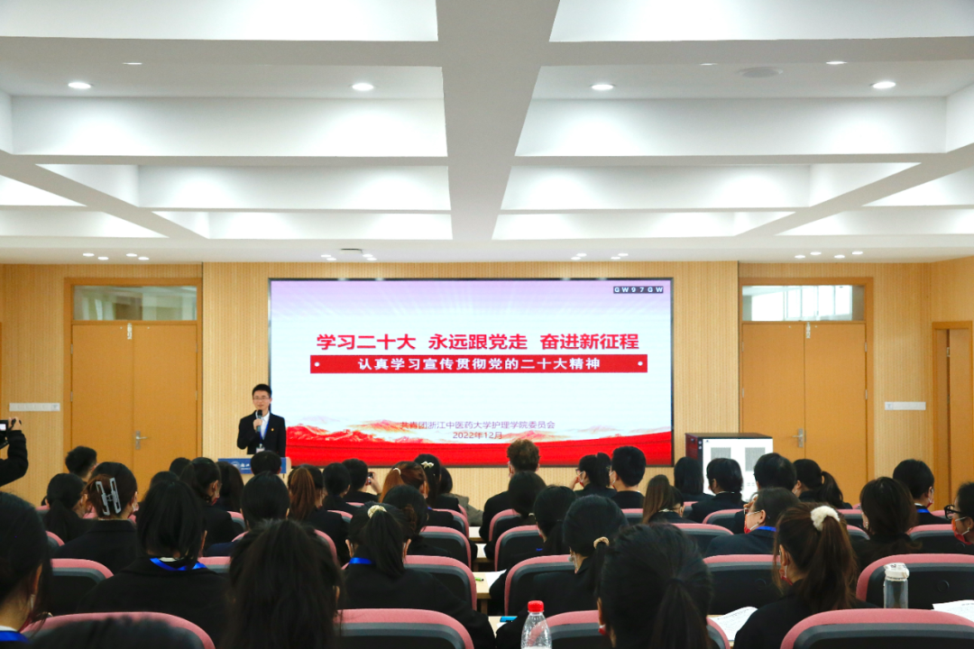 报告最后,她们还发出了倡议,希望我们能够始终高举中国特色社会主义伟大旗帜,扬起风帆,沿着党指引的航向,心怀重任守正创新,凝心聚力勇毅前行,团结带领全院广大学生青年为建设“最美护理”踔厉奋斗。