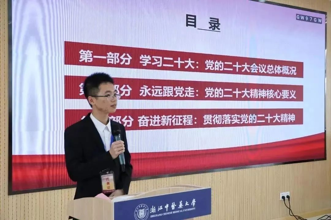 趁着大会计票人员统计票数的同时,作为万象城awcsport官网二十大精神青年宣讲团成员的杨杰凯同学上台为大家宣讲党的二十大精神。宣讲最后还强调,当代中国青年生逢其时,施展才干的舞台无比广阔,实现梦想的前景无比光明。广大青年要坚定不移听党话、跟党走,怀抱梦想又脚踏实地,敢想敢为又善作善成,立志做有理想、敢担当、能吃苦、肯奋斗的新时代好青年,让青春在全面建设社会主义现代化国家的火热实践中绽放绚丽之花。
