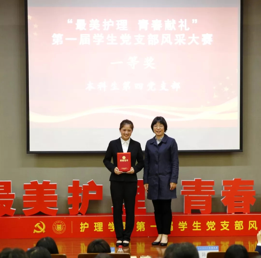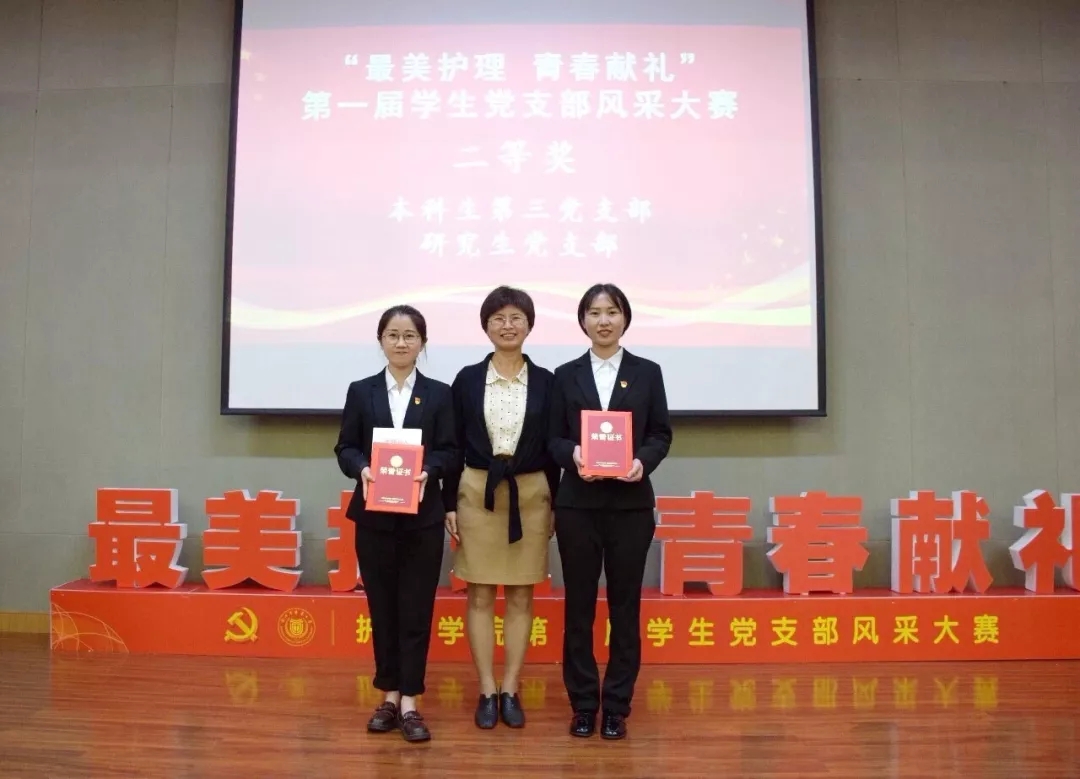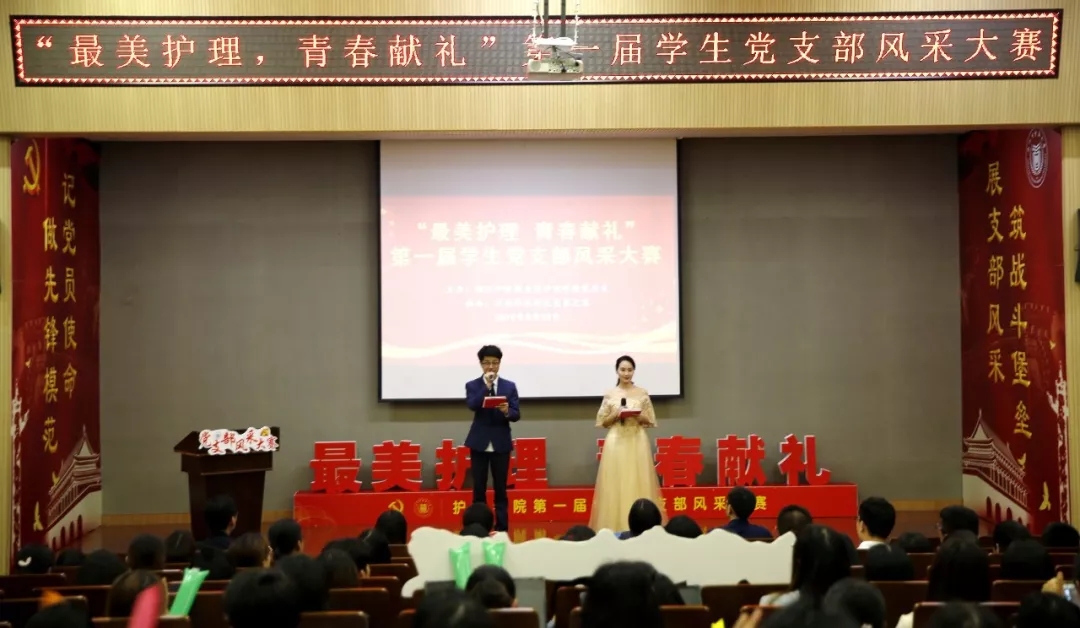 为激发学生的爱党爱国热情,展现党支部风采,以实际行动向建党98周年、新中国成立70周年、建校60周年和建院20周年献礼,5月15日,万象城awcsport官网在滨文校区图书馆报告厅举办了“最美护理,青春献礼”第一届学生党支部风采大赛。