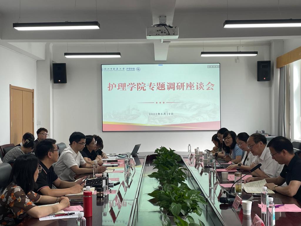 首先,黄建波副校长介绍了调研的背景目的和主要内容。随后,何桂娟院长做主题为精准发力、积厚成势,不断推进护理学一流专业建设工作汇报,从专业发展概况、专业建设成效、认证工作进度和认证工作举措四个方面详细介绍了护理专业建设情况。