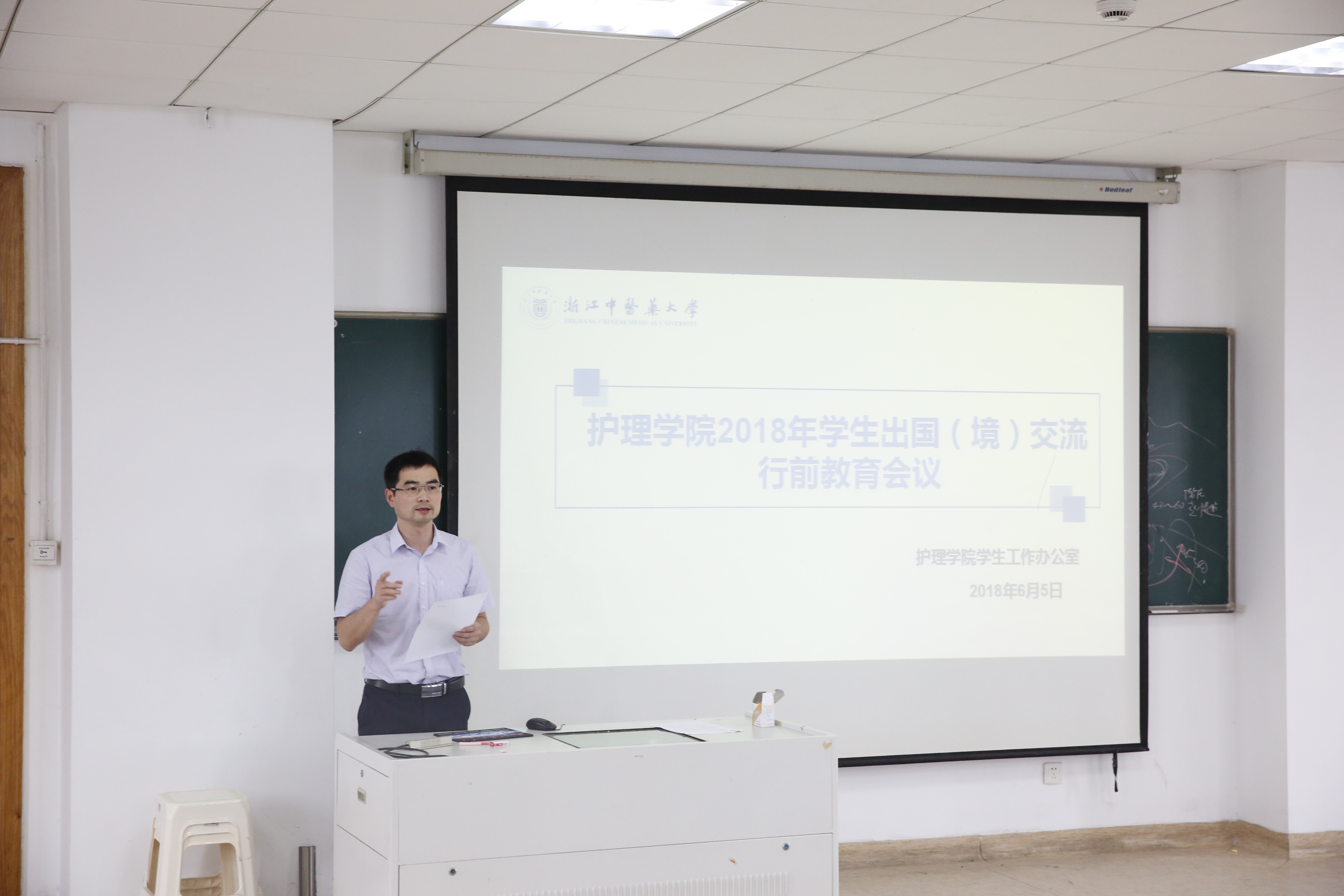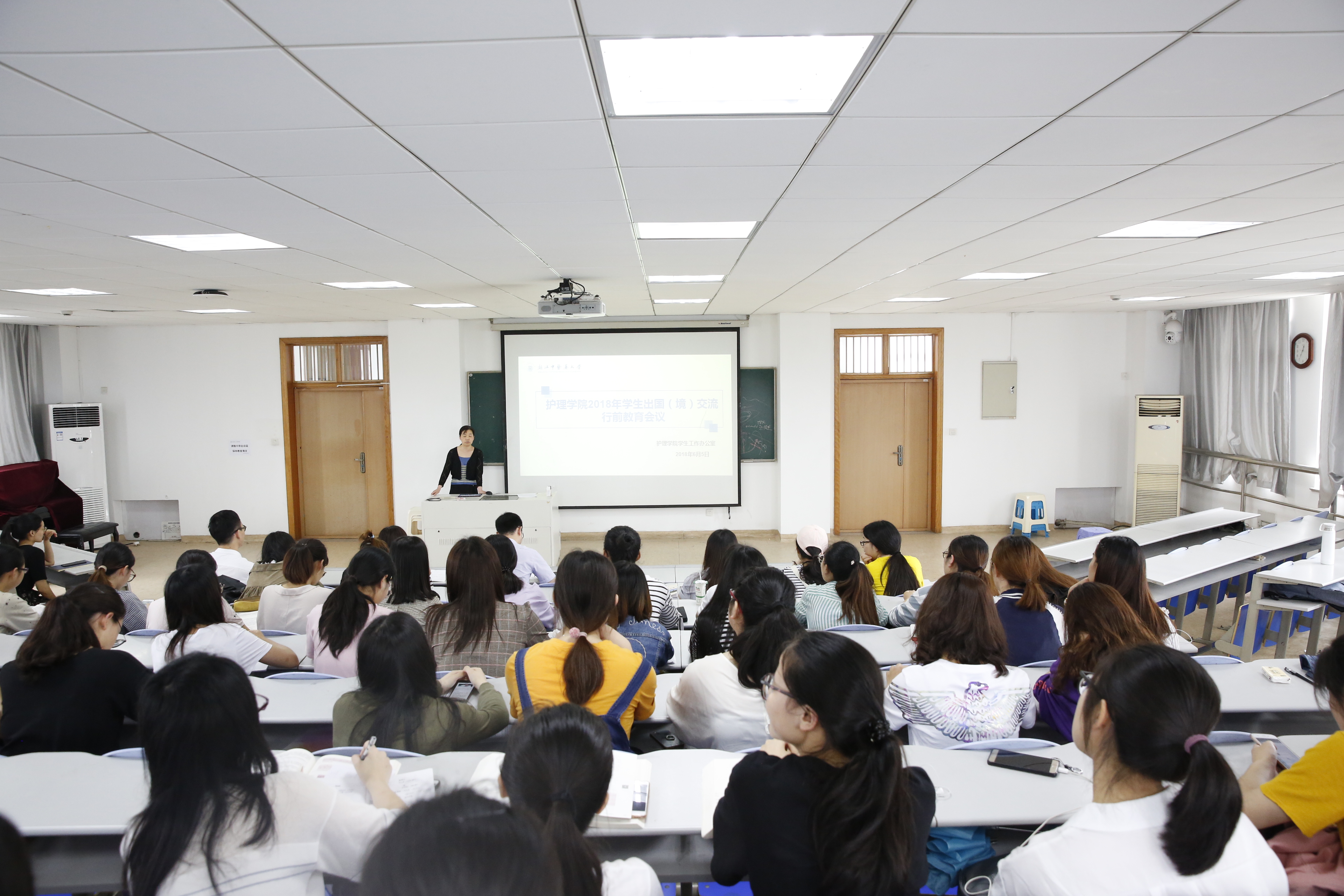 林觐民副书记对在外交流期间安全事宜作出五点强调:1、注意人身、财产安全,保管好护照、通行证并留存复印件备用。2、交流期间,一切行动听指挥,严禁擅自行动,实行严格的请示汇报制度。3、学员应在带队老师带领下每日交流学习心得,每周形成文字材料,行程结束返校后向同学们汇报交流成果。4、不参加任何政治、宗教活动,不购买、阅读非法反动读物。5、不发布游玩照片到朋友圈或QQ动态。最后,他向与会同学介绍了2018年全校对外交流的资助情况,希望同学们心存感恩,把握机遇,克服在外生活学习种种不利因素,努力成为“护理骄傲”。