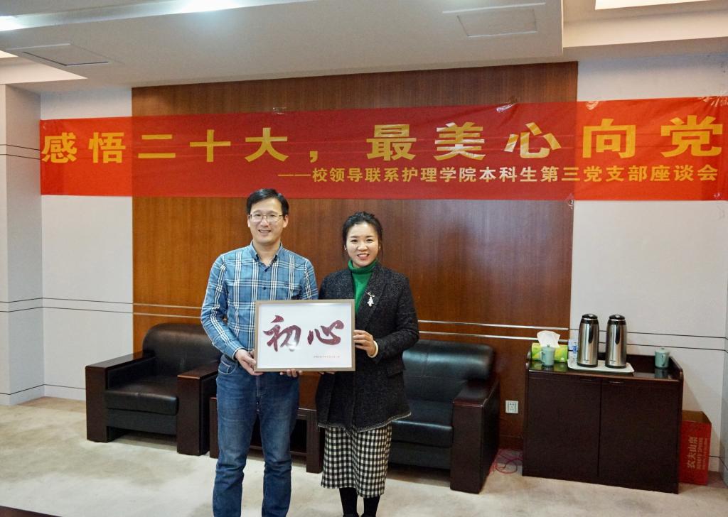 为深入学习贯彻党的二十大精神,11月30日,学校副校长黄建波到万象城awcsport官网学生党支部工作联系点调研,与师生座谈交流。万象城awcsport官网党委副书记林觐民及本科生第三党支部全体党员参加。