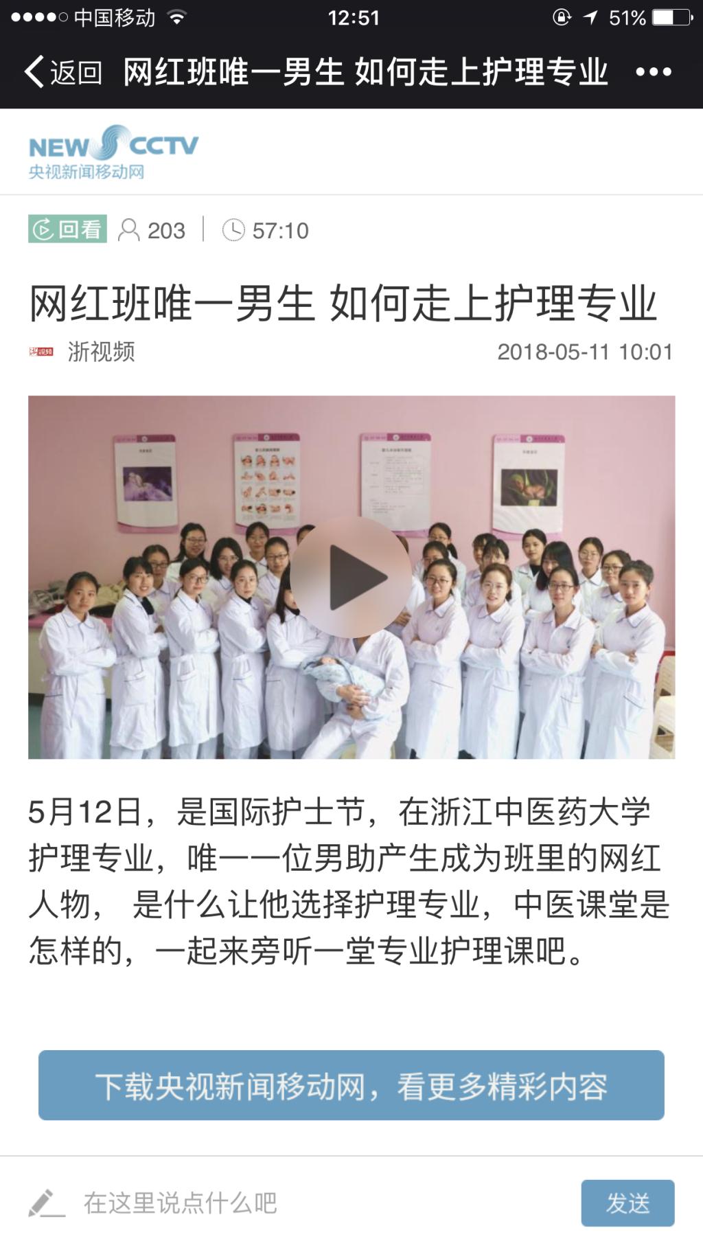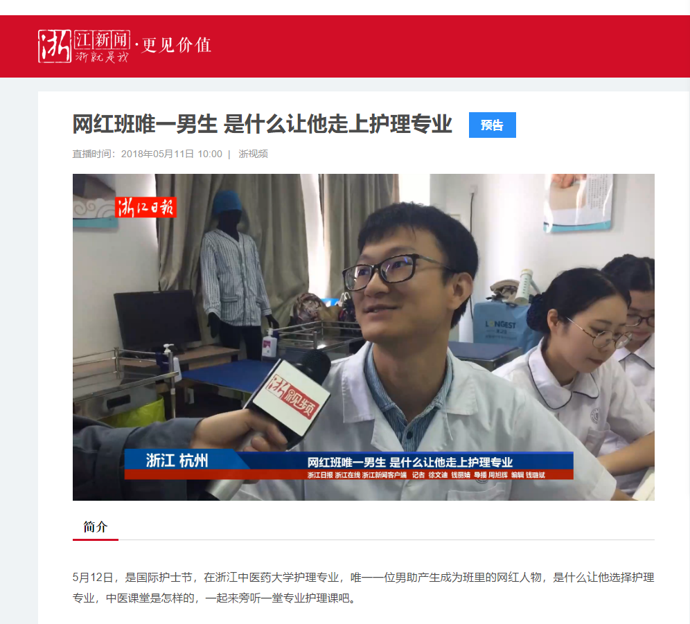 本次网络直播课程的另一主角则是是前一段时间在网络上走红的“网红班唯一男生”——娄聪裕同学,他是2015级助产学1班的唯一个男生,在直播结束后的采访中他表示因为对于护理专业的热爱、对于中医护理的魅力使得他毅然决然的选择了护理专业。身为一名光荣的护理人,他将继续用自己所学服务广大群众,用实际行动弘扬护理正能量。