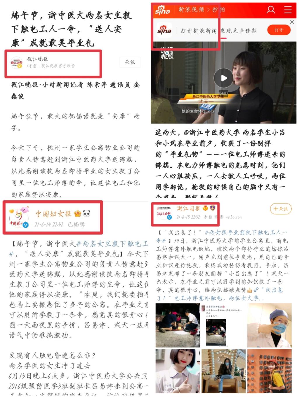 近日,浙江日报、钱江晚报、中国妇女报、新浪新闻等权威媒体,纷纷对万象城awcsport官网的毕业生武天一的见义勇为行为进行了转载报道。