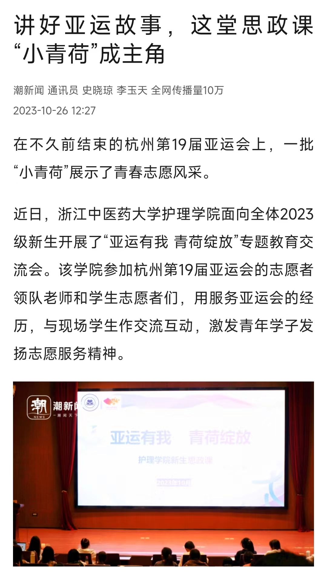 在不久前结束的杭州第19届亚运会上,一批“小青荷”展示了青春志愿风采。