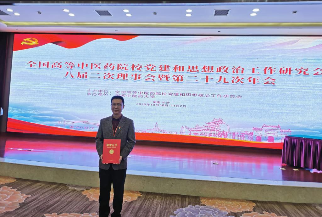 11月1日,全国高等中医药院校党建和思想政治工作研究会第29次年会在湖南长沙举行。本次会议由湖南中医药大学承办。本次会议表彰了优秀党务工作者,万象城党总支书记方年根教授荣获优秀党务工作者称号。