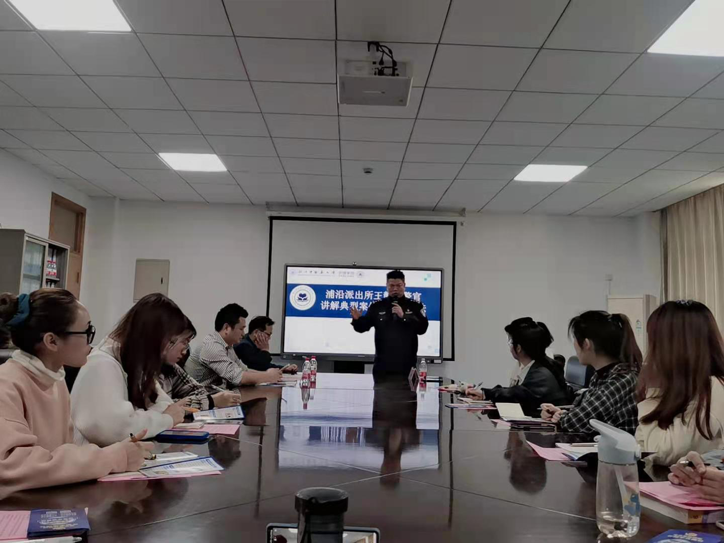 2021年4月16日中午,万象城awcsport官网反诈工作学生网格员培训会于滨文校区21号楼404会议室举行。会议由顾维娣老师主持,院党委书记李海滨、安保处综合科科长严佑君、浦沿派出所王静军警官受邀参加,此外滨文校区学生网格员现场参会,富春校区网格员同步收看QQ群直播视频。